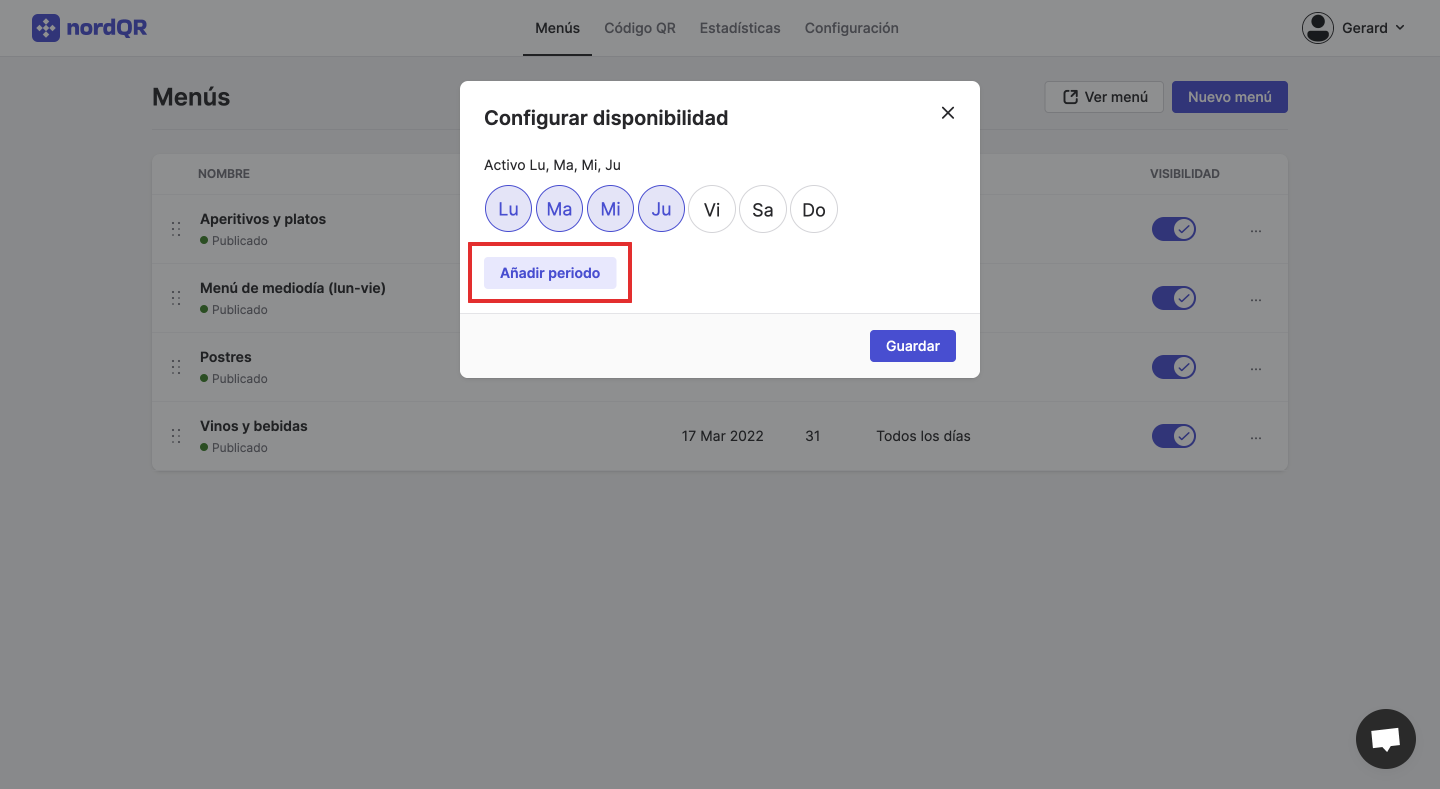 3) Si quieres, también puedes añadir franjas horarias de disponibilidad. Simplemente haz click en Añadir periodo.