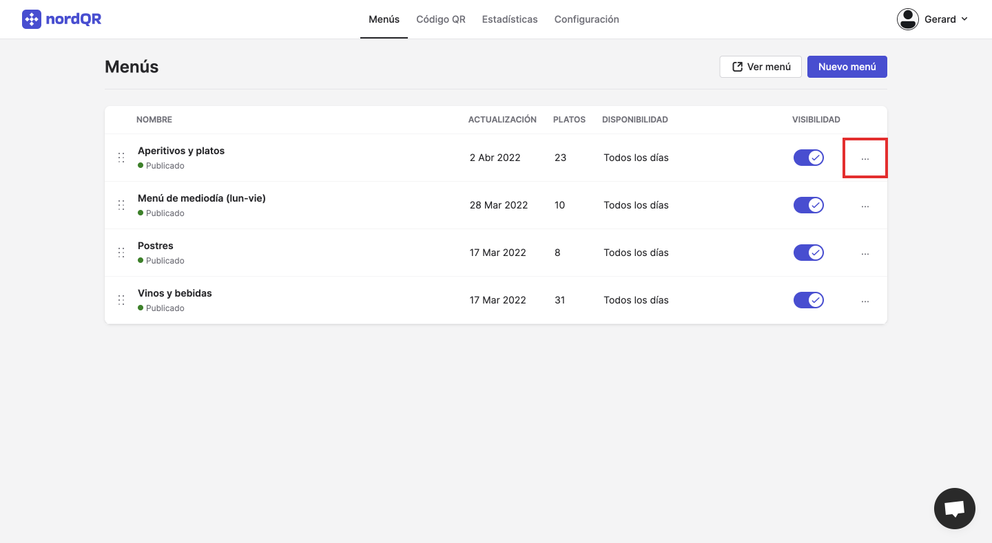 1) Haz click en el icono ... del menú que quieras renombrar.